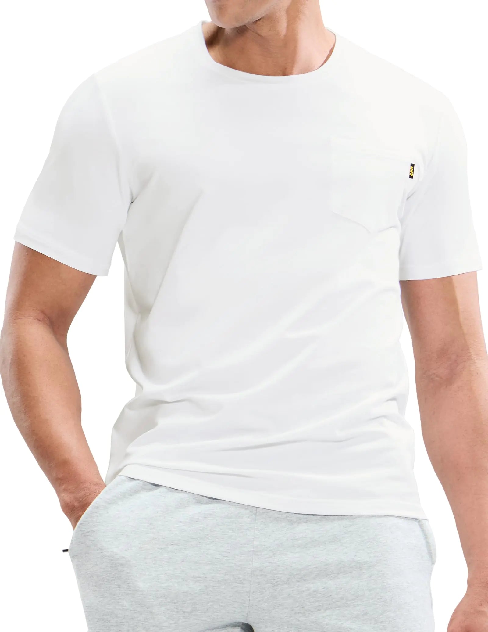 LEXORAMODA Erkek Kısa Kollu Tişört Pamuk Bisiklet Yaka Cep Tees Casual Temel Nervürlü Yaka Üst Kısa Kollu Tişört Erkekler için Beyaz M