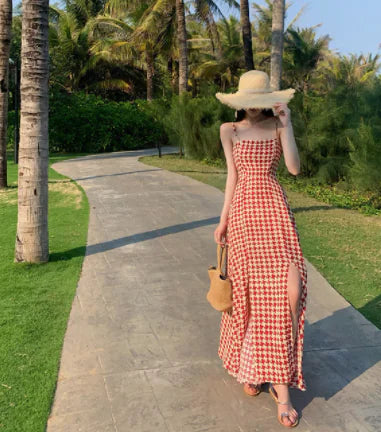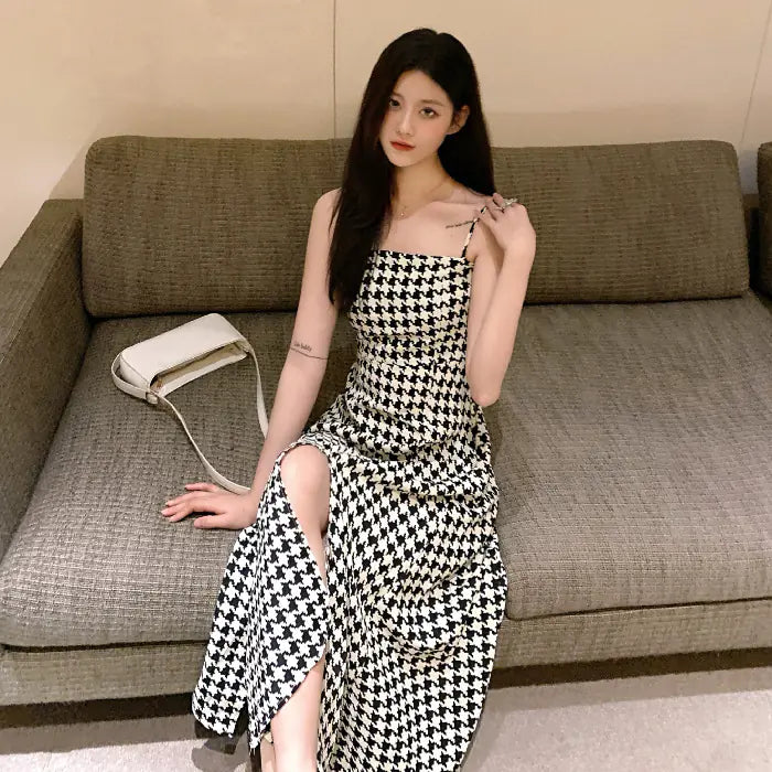 Kadın Slim Fit için Askılı Ekose Elbise